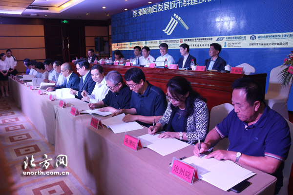 為響應黨中央、國務院關于推動京津冀協(xié)同發(fā)展的總體要求,由北京市建筑設計研究院有限公司(BIAD)、天津市建筑設計院、河北建筑設計研究院有限責任公司三家地方建筑設計企業(yè)共同發(fā)起的“京津冀協(xié)同發(fā)展城市群建筑設計聯(lián)盟”于2015年9月18日在河北省保定市正式成立。該聯(lián)盟共計十四家地市級設計單位,我院作為成員單位參加了成立大會并簽署了聯(lián)盟協(xié)議。聯(lián)盟宗旨為:打造京津冀建筑設計開放性平臺,構建京津冀協(xié)同發(fā)展專業(yè)智庫。該聯(lián)盟今后將重點加強區(qū)域內建筑設計企業(yè)的資源共享、合作交流和創(chuàng)新發(fā)展,用規(guī)劃設計助力京津冀協(xié)同發(fā)展。